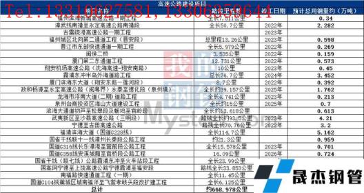 未来2-3年福建省高速公路在建新建线路总长约668.978公里,据不完全统计预计总用钢量约30.235万吨左右。