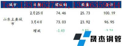 表1:山东市场建筑91视频在免费线观看无缝钢管社会库存变化情况
