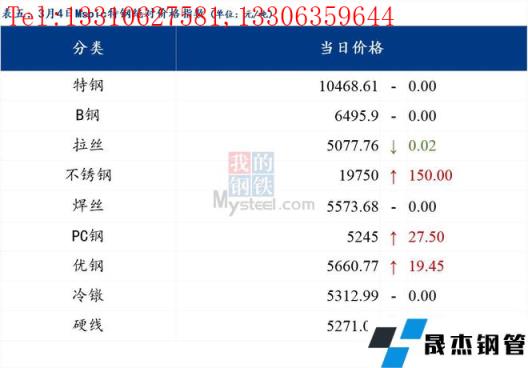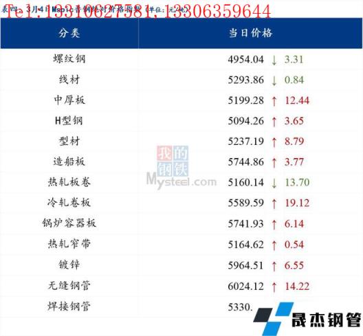 3月4日普钢绝对价格指数变化:综合指数5226.82,上涨0.36;螺纹钢指数4954.04,下跌3.31;线材指数5293.86,下跌0.84;热轧板卷指数5160.14,下跌13.7;冷轧板卷指数5589.59,上涨19.12;中厚板指数5199.28,上涨12.44。