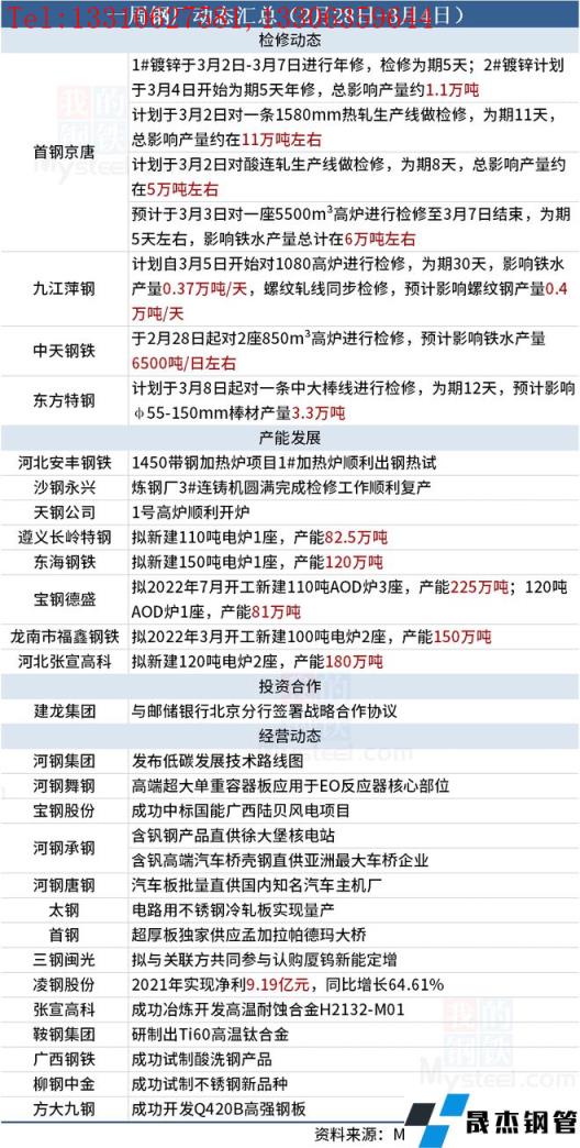 据不完全统计,本周(2月28日-3月4日)有4家无缝91视频在免费线观看钢管厂家发布检修动态,具体如下: