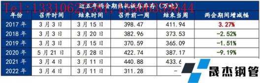 3月4日和5日,全国政协十三届五次会议和十三届全国人大五次会议先后在北京开幕。整理了过去五年两会期间热轧板卷价格和库存的数据变化。