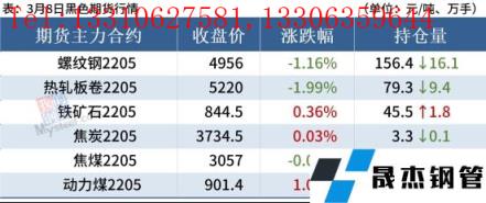 热轧板卷:3月8日,全国24个主要城市4.75mm热轧板卷均价5268元/吨,较上个交易日下跌21元/吨。黑色商品期货市场早盘弱势震荡运行,午后跳水震荡趋弱,午后市场继续下调报价,近期市场报价较乱,多被盘面带动,市场买家也跟随盘面大幅波动而选择观望为主。整体来看,近期价格波动幅度较大,主要受海外地缘冲突升级导致,实际供需并未发生大的变化。综合来看,预计9日价格或将以震荡趋弱为主。