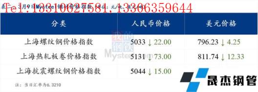 分地区方面,上海螺纹钢价格指数5033,下跌22.0;上海热轧板卷价格指数5131,下跌73.0。(单位:元/吨)