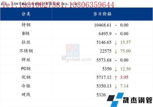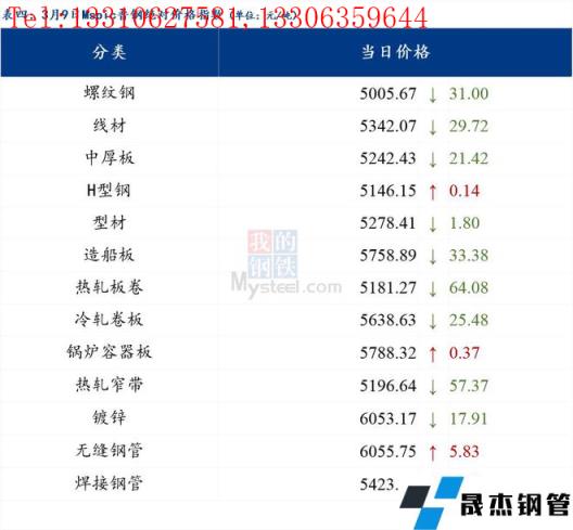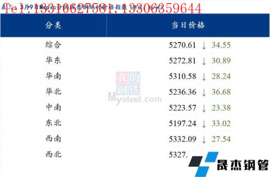 3月9日普钢绝对价格指数变化:综合指数5270.61,下跌34.55;螺纹钢指数5005.67,下跌31.0;线材指数5342.07,下跌29.72;热轧板卷指数5181.27,下跌64.08;冷轧板卷指数5638.63,下跌25.48;中厚板指数5242.43,下跌21.42。