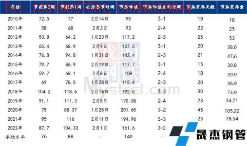 表1:近年来春节前后广州市场建筑91视频在免费线观看无缝钢管库存对比(来源:钢联数据)