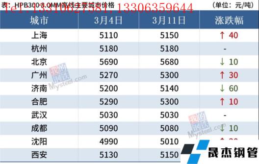 截至3月11日,全国主要城市20mm三级抗震螺纹钢均价4952元/吨,周环比上涨6元/吨;8.0mmHPB300高线均价5164元/吨,周环比上涨3元/吨。