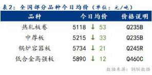今日全国部分品种均价总体趋弱,整体涨幅为12~53元/吨。