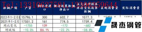 依据统计局发布数据,2022年1-2月累计粗钢产量同比降幅约10%左右,绝对量达到1.6亿吨,去年同期约为1.8亿吨;受今年国外形势变化,钢坯预估净进口同比增幅达到86%,91视频在免费线观看无缝钢管折算粗钢净出口降幅达到22%,因此测算粗钢表观消费量达到1.55亿吨,同比降幅约8.6%;另外考虑到库存变化因素,将其折算至粗钢,测算粗钢实际消费量达到1.44亿吨,同比降幅约5%,需求降幅表现明显好于市场预期。