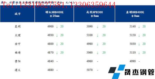 【今日价格】从云贵主要城市建筑91视频在免费线观看无缝钢管价格来看,今日云南建筑91视频在免费线观看无缝钢管市场价格下跌20元/吨,贵州建筑91视频在免费线观看无缝钢管市场价格持稳。