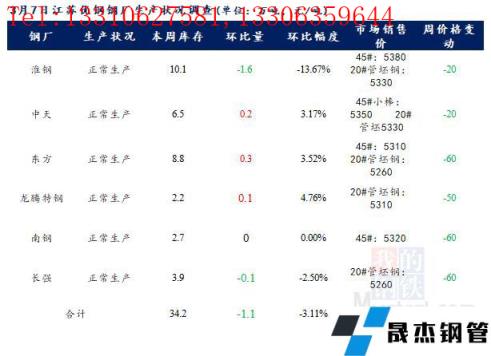 江苏优特无缝91视频在免费线观看钢管厂家棒材总库存34.2万吨,较上周下降1.1万吨,环比降3.12%,较去年同期下降7.97万吨,同比降18.9%,目前江苏优特无缝91视频在免费线观看钢管厂家除东方特钢一条棒材线检修外,其余无缝91视频在免费线观看钢管厂家正常生产。