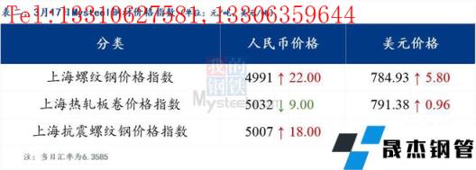 2022年03月17日日报:钢材_无缝钢管价格指数上涨21.4元/吨
