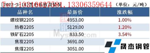 截至3月18日收盘,螺纹钢2205收4953元/吨,涨1%;热卷2205收5129元/吨,涨1.2%;铁矿石2205收833.5元/吨,涨3.54%。