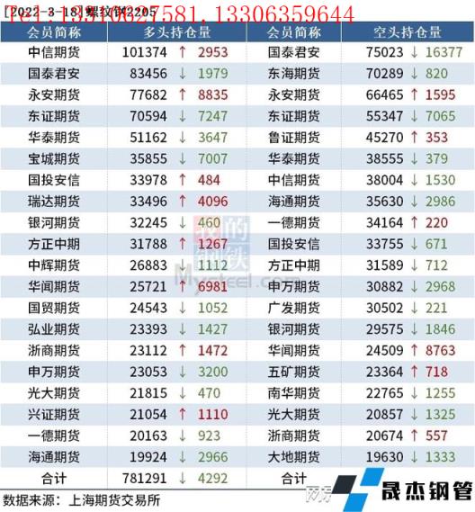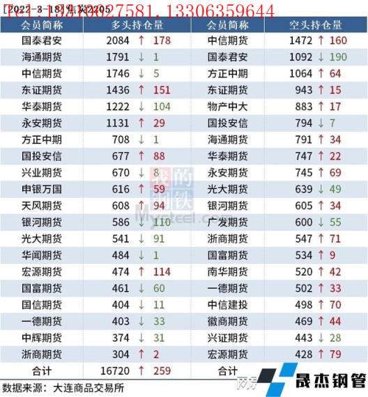 黑色持仓日报:铁矿石涨3.54%,国泰君安减持1.6万手螺纹钢空单