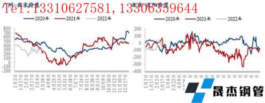 目前北京价格居于低位,不过从南北价差的历史数据来看,广州-北京价差不足300元/吨,也属于偏低水平;虽然目前东北区域价格略高于北京,但是东北区域受疫情影响较大,汽运运输受阻,资源消化艰难,其中沈阳建筑91视频在免费线观看无缝钢管市场库存量已经创出有调研数据以来的峰值,市场有一定的库存压力,因此在华南价格优势不大,又在缓解东北区域压力的前提下,北京以及京津冀其他区域仍是东北区域无缝91视频在免费线观看钢管厂家(凌钢、新抚钢等)资源输送的主要区域。