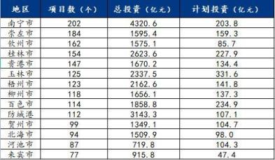 根据这些数据可以看到,从总投资额来看,南宁、防城港、桂林成为重点建设的城市,从项目数量来说,南宁、崇左、钦州成为最多的3个城市,从2022年的投资额来看,玉林、百色、桂林成为重点建设城市。