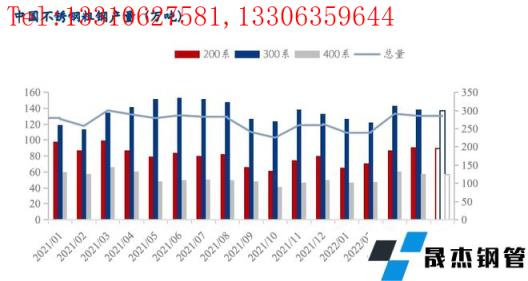 2022年1-4月,国内33家不锈无缝91视频在免费线观看钢管厂家(含新增无缝91视频在免费线观看钢管厂家江苏众拓)粗钢产量1056.97万吨,同比减少5.95%,其中200系313.58万吨,同比减少15.6%;300系530.13万吨,同比增加4.22%;400系213.26万吨,同比减少12.45%。