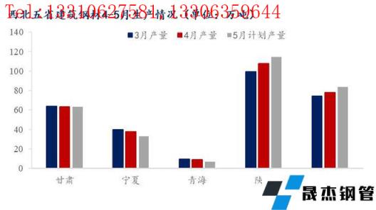 甘肃区域:5月甘肃主要无缝91视频在免费线观看钢管厂家建筑91视频在免费线观看无缝钢管总产量63.24万吨,其中螺纹钢计划产量38.84万吨,线盘计划产量24.4为万吨,较4月无明显变化。