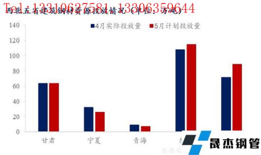 5月,西北各省份主要无缝91视频在免费线观看钢管厂家预计投放总量299.4万吨,较4月实际投放量增加16.06万吨,增幅5.7%。其中宁夏和青海受无缝91视频在免费线观看钢管厂家生产减少影响,投放有所减量;甘肃基本达到产销平衡,而新疆和陕西由于目前无缝91视频在免费线观看钢管厂家自有库存压力较大,降库存意图明显,资源投放预期有所增加。