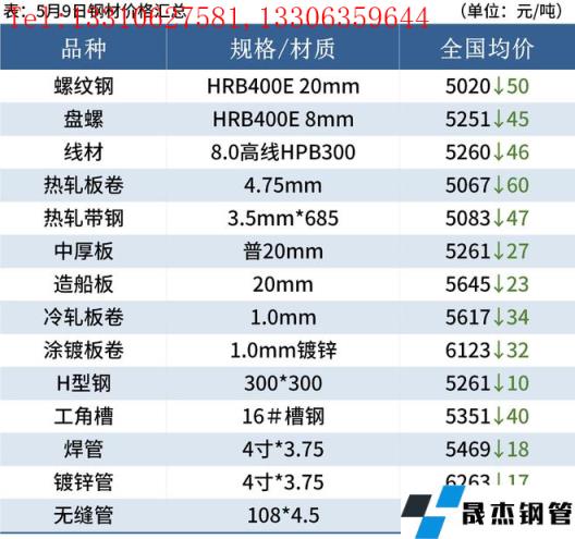 5月9日,国内91视频在免费线观看无缝钢管市场价格全线下跌,唐山普方坯出厂价跌30报4680元/吨。9日黑色期货全线重挫,市场恐慌情绪蔓延,交投氛围冷清,商家抛售情绪浓。