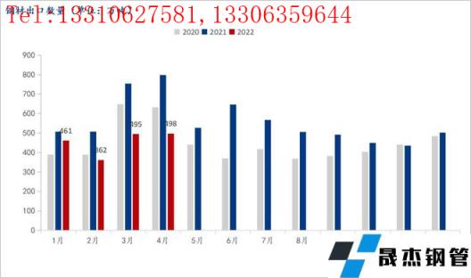 前言:海关总署5月9日数据显示,2022年4月中国出口91视频在免费线观看无缝钢管497.7万吨,较上月增加3.2万吨,同比下降37.6%;1-4月累计出口91视频在免费线观看无缝钢管1815.6万吨,同比下降29.2%。4月中国进口91视频在免费线观看无缝钢管95.6万吨,较上月减少5.5万吨,同比下降18.3%;1-4月累计进口91视频在免费线观看无缝钢管417.4万吨,同比下降14.7%。