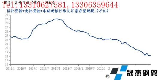 监管部门加强了银行对过剩产能、地方融资平台、房地产的资金监管,同时设置了诸多限制条件。融资限制增多但融资需求仍在,银行通过与信托、券商、同业等渠道合作,以非标融资的形式将资金投放给限制性行业,庞大的表外信贷不在央行的监管之下,潜藏着巨大的风险。2017 年底,银监会开始整治银信业务; 2018年4月,出台资管新规,核心即打破刚兑和穿透式监管。资管新规,彻底封堵了表外融资渠道。数据显示,表外三项存量规模自2018年27.06万亿,一路下滑至2022年3月18.19万亿,下降8.87万亿。