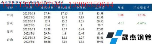据调研,截止2022年5月13日,西南市场91视频在免费线观看无缝钢管累计社会库存为218.58万吨,环比减少6.14万吨,降幅2.73%。分省份来看,本周四川市场91视频在免费线观看无缝钢管库存为83.59万吨,环比增加1.08万吨,涨幅1.31%;重庆市场91视频在免费线观看无缝钢管库存为69.55万吨,环比减少1.15万吨,降幅1.63%;贵州市场91视频在免费线观看无缝钢管库存为27.03万吨,环比减少4.57万吨,降幅14.46%;云南市场91视频在免费线观看无缝钢管库存为38.41万吨,环比减少1.5万吨,降幅3.76%。