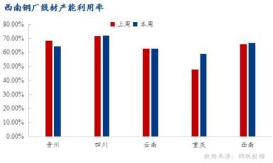 云南区域:线材排产较上周无明显变化,线材产能利用率62.88%,开工率76.92%,周产量10.35万吨,环比持平。