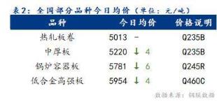 今日全国部分品种均价趋弱,其中全国热轧板卷均价平稳,中厚板下跌4元/吨。