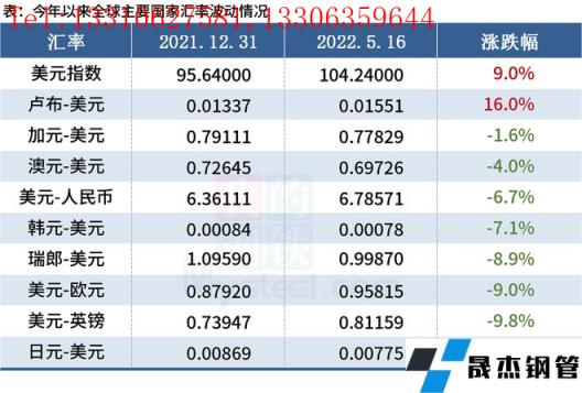 受到俄乌冲突、美联储加息等因素影响,今年以来全球主要国家汇率波动较大。其中大部分国家货币以贬值为主,日元跌幅居前。值得注意的是,卢布兑美元“一枝独秀”,保持强势。