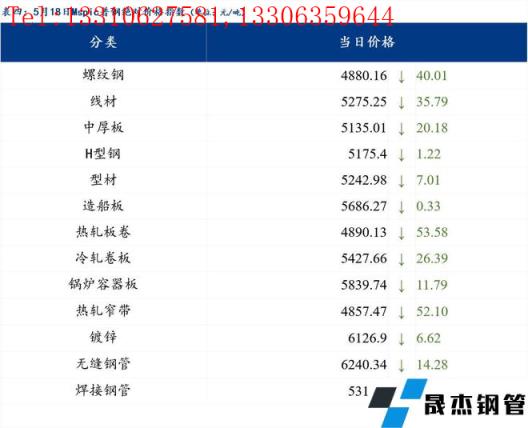 2022年05月18日日报:钢材_无缝钢管价格指数下跌34.88元/吨