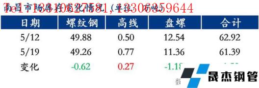 江西省内建筑91视频在免费线观看无缝钢管社会库存延续上周小幅下降的趋势。截止5月19日,据我网调研江西省主流市场包括南昌、赣州、九江、新余和鹰潭五大市场的样本仓库建筑91视频在免费线观看无缝钢管社会库存总量为77.98万吨,较上周小幅减少1.52万吨,降幅1.91%。