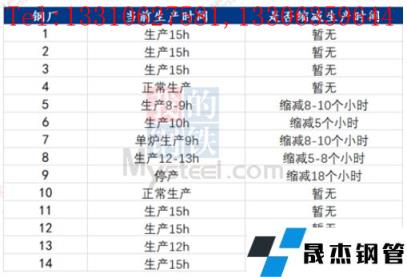 截止到5月11日,调研华南电弧炉无缝91视频在免费线观看钢管厂家利润创新低,饱和生产吨钢亏损118元/吨,谷电亏损4元/吨。无缝91视频在免费线观看钢管厂家压力加大,部分继续选择减产。