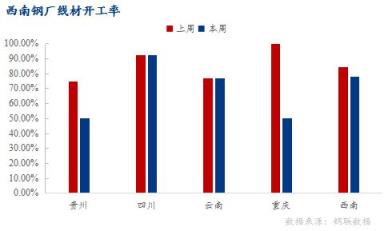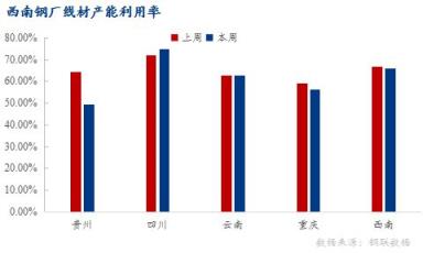 重庆区域:一无缝91视频在免费线观看钢管厂家因坯料不足,短期停产,线材产能利用率56.36%,环比下降2.89%;开工率50%,环比下降50%;周产量1.95万吨,环比减少0.1万吨。