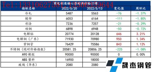 家电原材料周报(5.16-5.20)