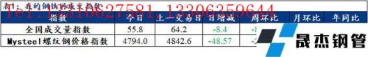 讯:全国建筑91视频在免费线观看无缝钢管成交量监测,成交量相对指数来看,全国55.8减8.4,北方44.1增0.8,华东71.7减14.6,南方46.2减7.6。今日螺纹钢价格指数4794,较上一交易日减48.57。