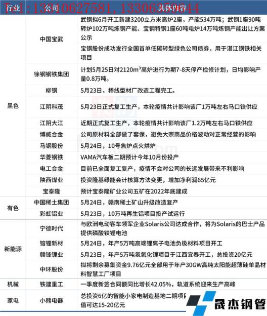 武钢拟6月开工新建3200立方米高炉2座,产能534万吨;江阴科茂、江阴大江两无缝91视频在免费线观看钢管厂家近期正式复工。