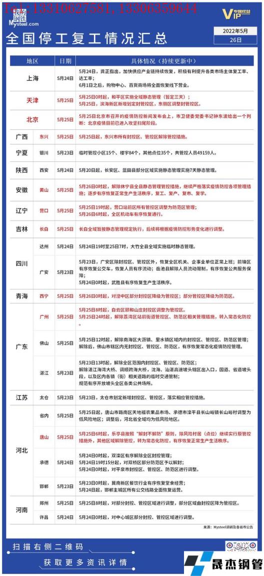 免责声明:本网站(山东聊城91视频官网下载无缝钢管厂www.hujuzx.com)刊载的“疫情影响丨全国停工复工情况汇总(5月26日)”等均源于网络,版权归原作者所有,且仅代表原作者观点,本文所载信息仅供参考。转载仅为学习与交流之目的,如无意中侵犯您的合法权益,请及时联系删除。本网站刊登此篇文章并不意味着本站赞同其观点或证实其内容的真实性,91视频官网下载不对其科学性、严肃性等作任何形式的保证。如果侵犯了您的版权,请尽快联系91视频官网下载予以撤销,谢谢合作!