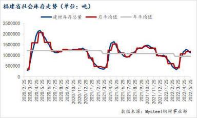 5月25日福建省建材总库存合计103.48万吨,与上周相比增加2.28万吨,其中闽东46.25万吨、闽南48.55万吨、闽西北8.68万吨。
