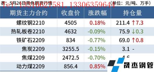 建筑91视频在免费线观看无缝钢管:5月26日,全国31个主要城市20mm三级抗震螺纹钢均价4744元/吨,较上个交易日下跌22元/吨。受现货持续回落,本周无缝91视频在免费线观看钢管厂家减产范围扩大,螺纹钢产量小幅下降,厂库小幅上升,但社库持续下降,表观消费小幅回落。短期来看,尽管近期利好政策层出不穷,但政策落地执行仍需时日。目前市场情绪依然偏空,短期仍然需要进一步提振市场消费信心及投资信心。因此预计27日国内建筑91视频在免费线观看无缝钢管价格或将继续窄幅趋弱调整为主。