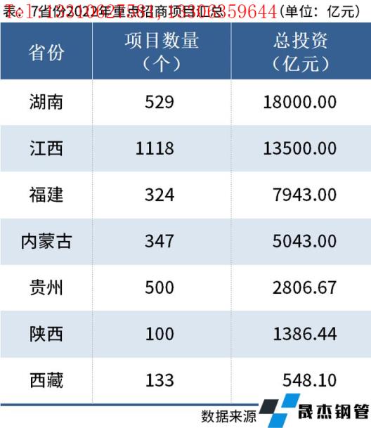 据不完全统计,截至5月26日,7个省份发布了2022年重点招商项目清单,合计共3051个项目,总投资达4.92万亿元。