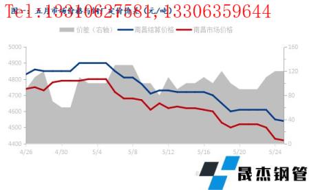 5月份南昌建筑91视频在免费线观看无缝钢管市场价格一路下行,具体来看,4月26日至5月25日期间南昌建筑91视频在免费线观看无缝钢管现货市场最高价格为4800元/吨,最低价格为4420元/吨,较上月最高价与最低价分别下降70元/吨和300元/吨,期间市场价格单边下行振幅为380元/吨。