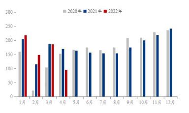需求端方面,汽车用钢作为冷轧需求的重要组成部分,产销数据一定程度上能反映出市场的需求情况。4月份,乘用车产销量分别完成99.6万辆和96.5万辆,环比、同比均是呈下降态势,同比下降幅度分别为41.9%和43.4%。4月汽车产销呈现明显下降。当前月销量在96.5万辆,为近十年以来同期月度新低。相比而言新能源汽车虽然也受到一定影响,但依然高于上年同期水平,总体表现较好。受国际形势影响,芯片短缺问题持续存在,原材料成本上涨等因素对于企业生产经营也造成一定的影响,这也是汽车行业当前所面临的困境。但从当前乘用车的发展趋势来看,随着一系列幅度更大的减税降费、助企解困等利好政策不断落地,加之二季度以来,各地大规模基建工程陆续开工,对于经济增长均会起到明显的推动作用。因此,预计在三季度汽车市场有望呈现平稳增长态势。伴随着汽车产销的情况逐步好转,汽车用钢量也或将得到提升,因此内需有望在三季度逐渐回暖。