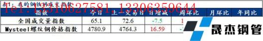 讯:全国建筑91视频在免费线观看无缝钢管成交量监测,成交量相对指数来看,全国65.1减7.5,北方53减11.9,华东81.7减3.1,南方55.2减9.5。今日螺纹钢价格指数4780.9,较上一交易日增16.59。