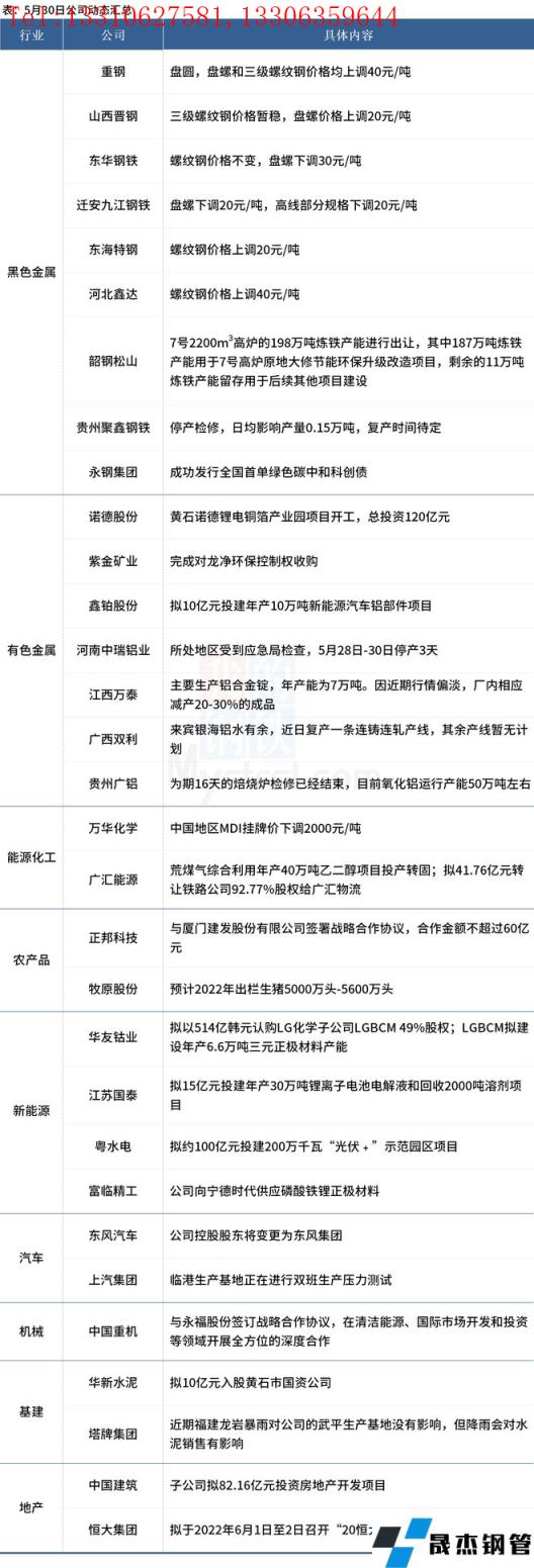 5月31日,汇总部分大宗商品相关企业动态。