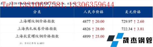 分地区方面,上海螺纹钢价格指数4877,上涨20.0;上海热轧板卷价格指数4826,上涨28.0。(单位:元/吨)