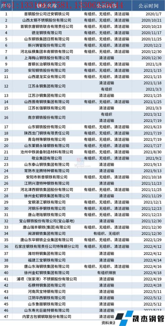 自2020年8月起,中国钢铁工业协会开展了钢铁企业超低排放改造和评估监测进展情况公示工作。截至2022年5月31日,已有47家钢铁企业在钢协网站进行公示。5月以来新增5家企业,分别为河南凤宝特钢、江阴华西钢铁、山东鲁丽钢铁、山东寿光巨能特钢和内蒙古包钢。