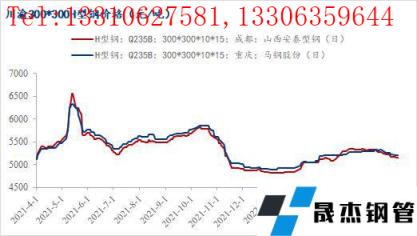 据钢联数据统计,截至6月2日,成都16#八钢槽钢价格为5250元/吨,较4月29日价格下跌280元/吨;成都300*300马钢H型钢价格为5150元/吨,较4月29日价格下跌180元/吨。