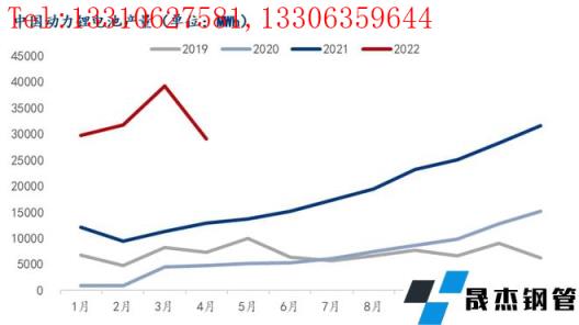 2022年前4个月中国动力锂电池产量为13GWh,同比增速超过180%,其中3月再度创历史新高,动力电池类锂电铜箔需求量接近10万吨。