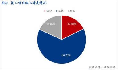 3、复工项目中,75.91%员工到岗率高于80%,82.35%施工进度恢复正常,其中18.07%有赶工需求;