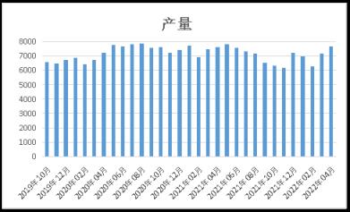 据国家统计局数据显示:2022年4月份,全国生铁产量7678万吨,同比持平。2022年1-4月份,全国生铁产量28030万吨,同比下降9.4%。(详见图1)。